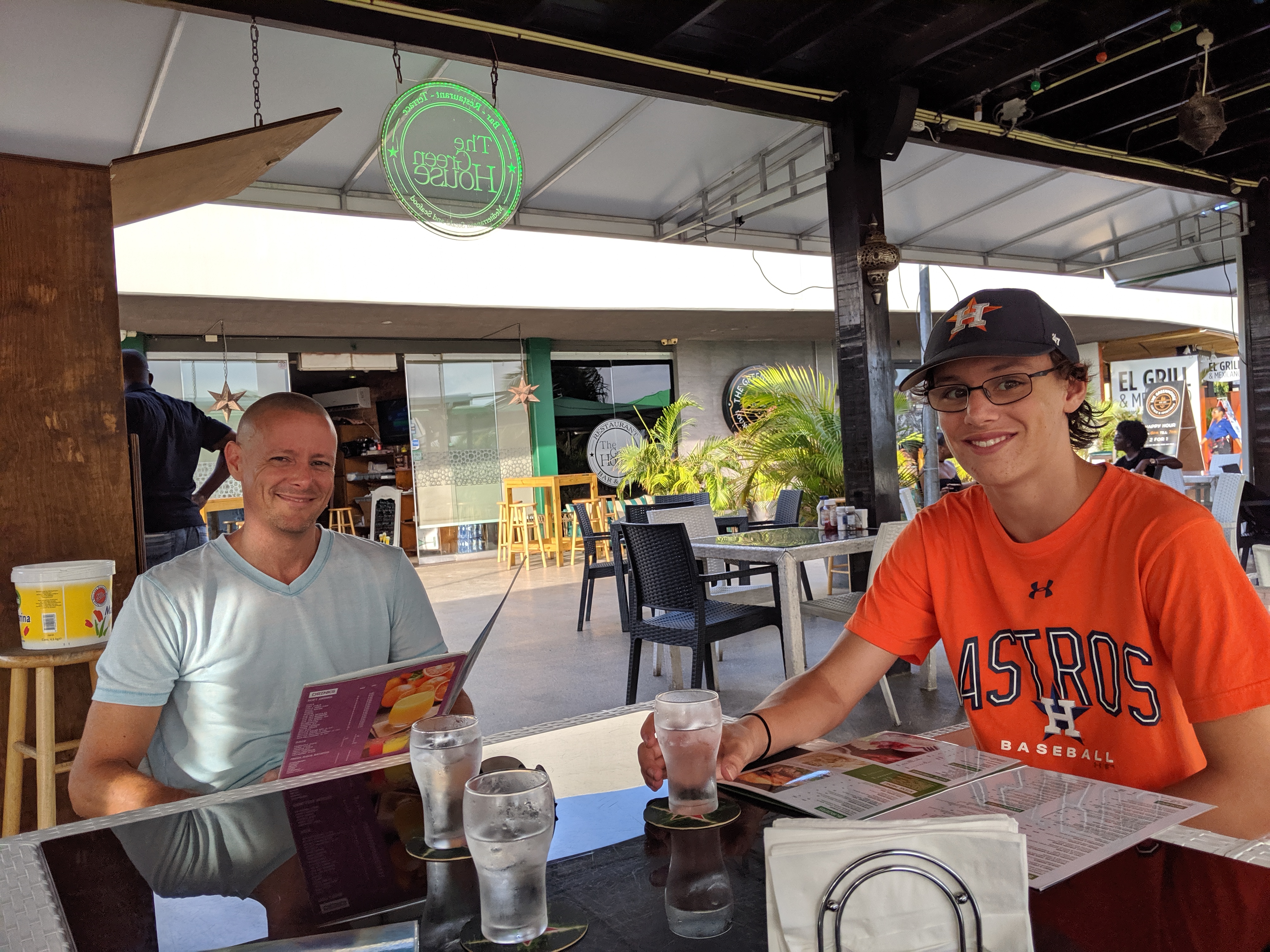 Great to see the Cody Rogers family looking so happy (many smiles) and healthy. You are so right, the views of the beach/water are spectacular from The Green House, Dinner looked very delicious, too. We sure appreciate the updates. Looks like life in the tropics agrees with all!