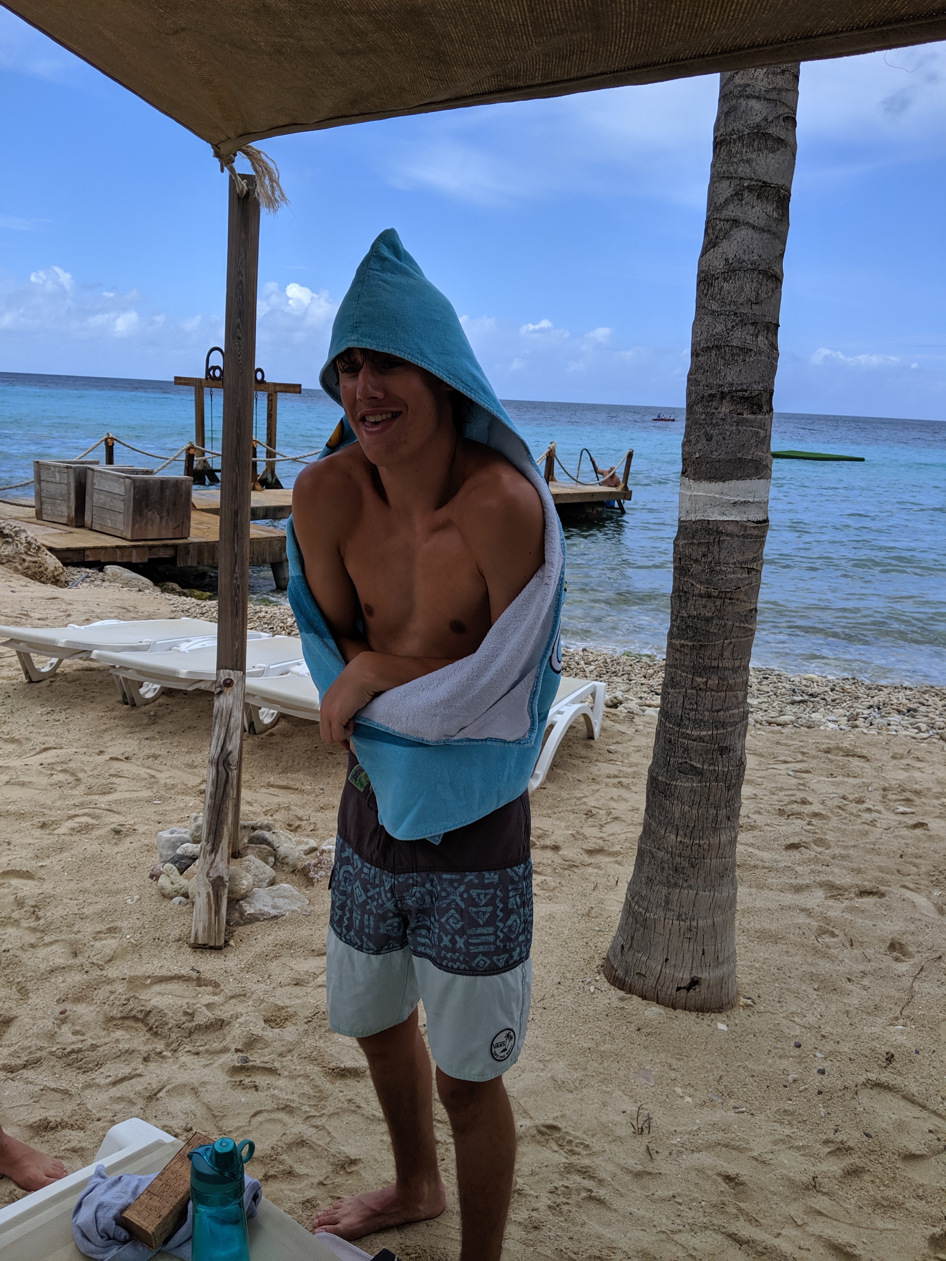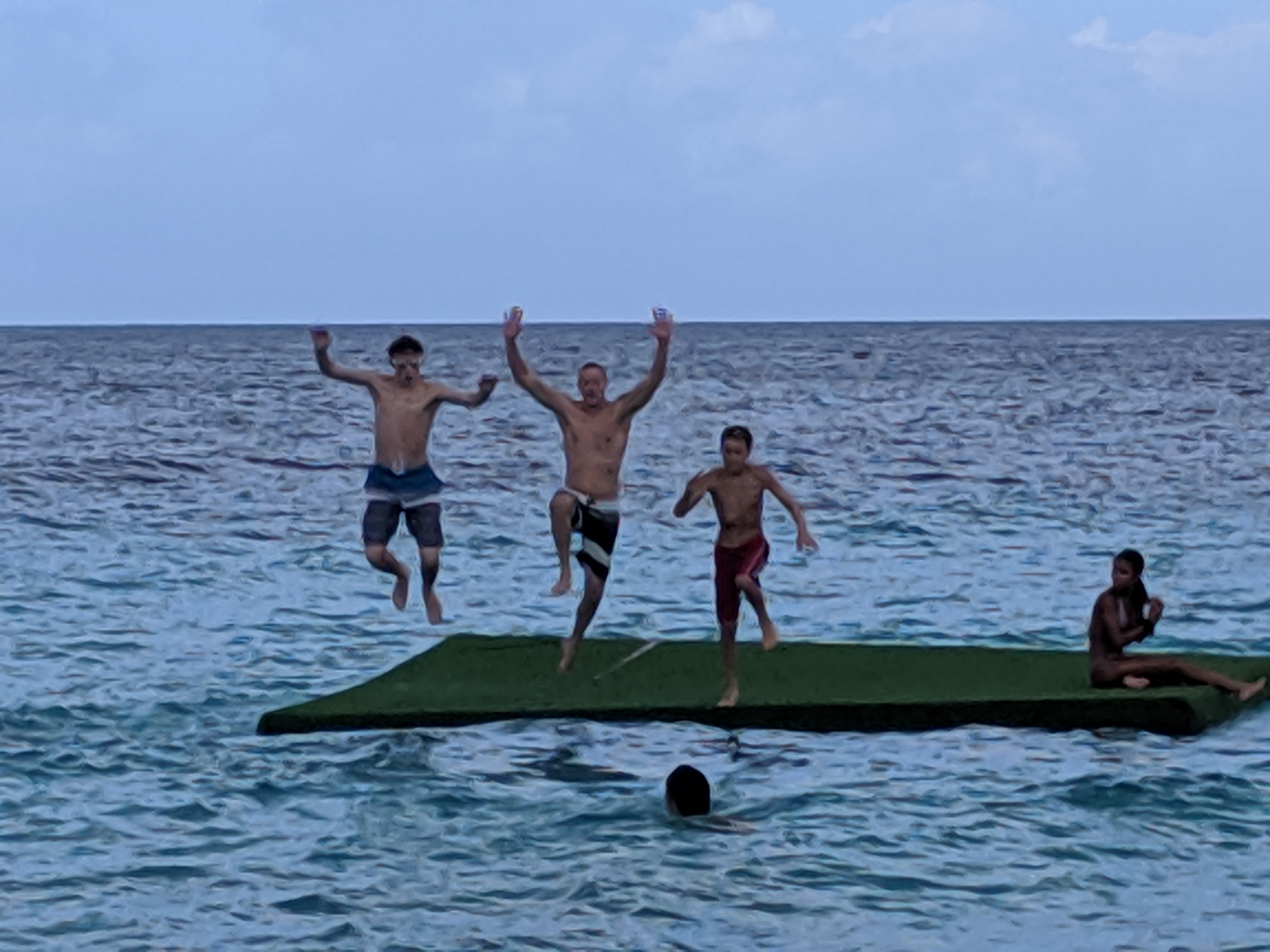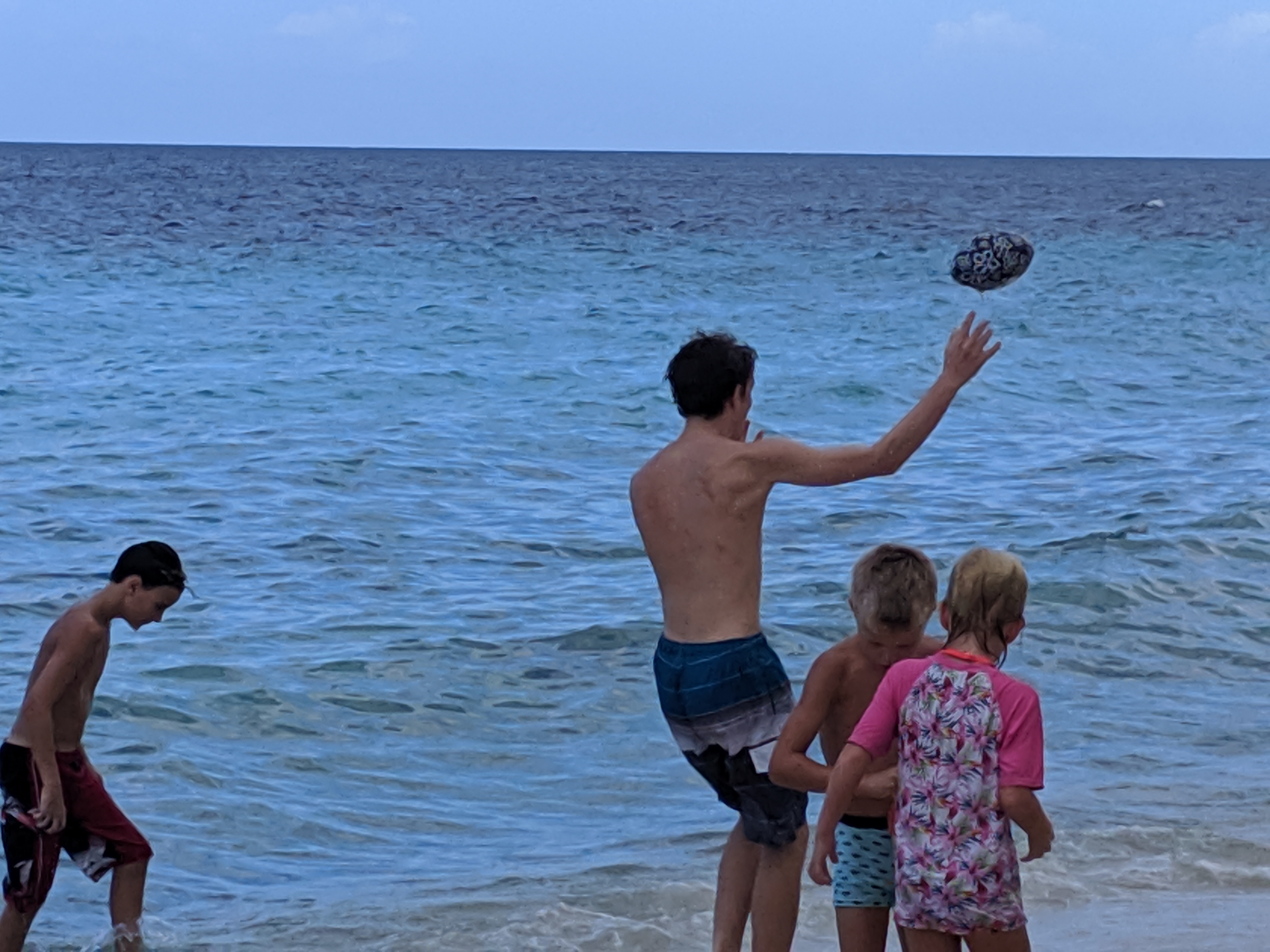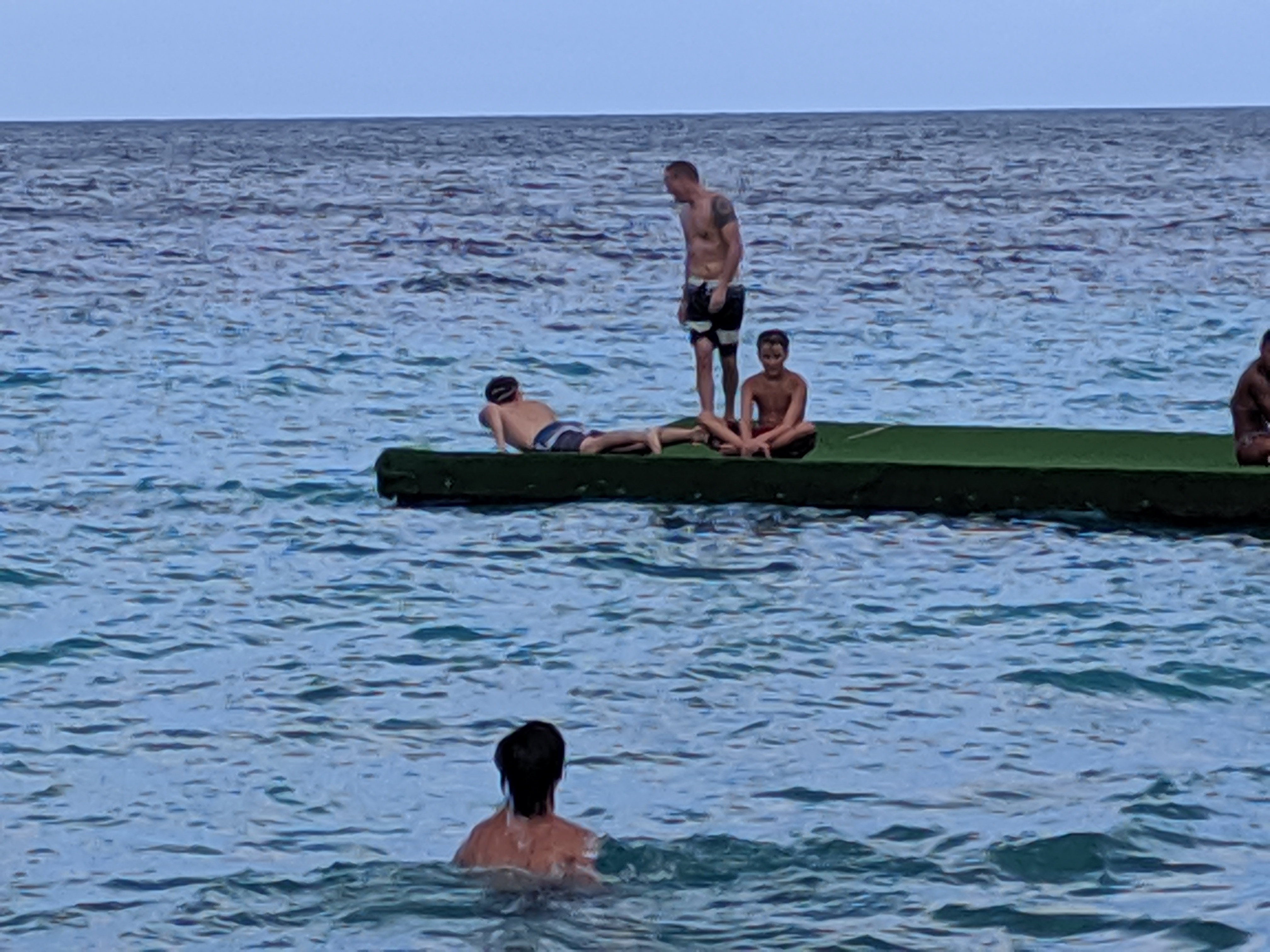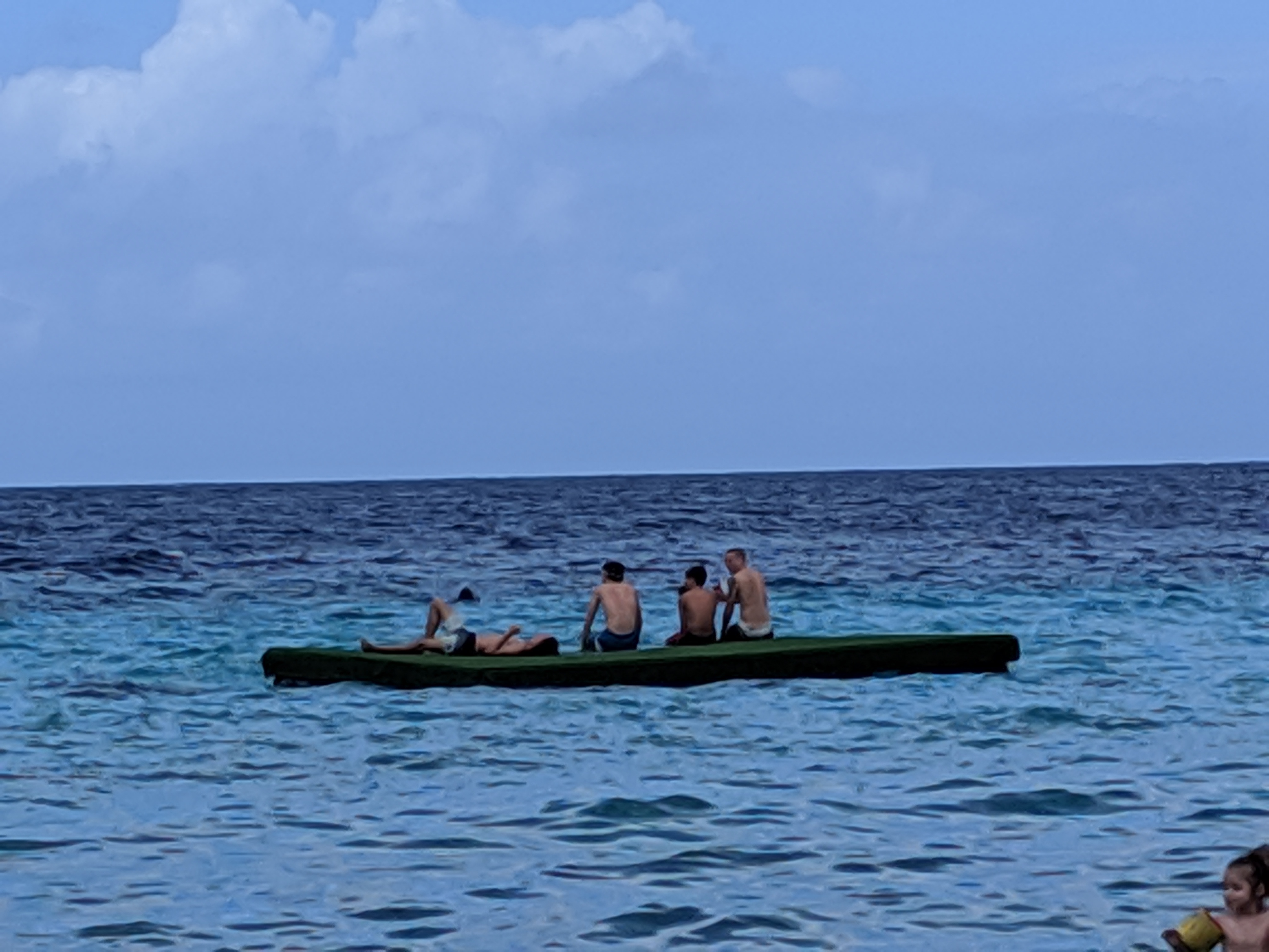 We all swam out to the platform, where we are guessing it was about 8 feet deep. You can see the bottom of the ocean PERFECTLY, even at 8 ft! The boys practiced flipping, throwing a ball around, and timing jumps. While there, we met a lot of other people, and everyone began playing a game together on the platform. Language differences didn’t stop the fun!