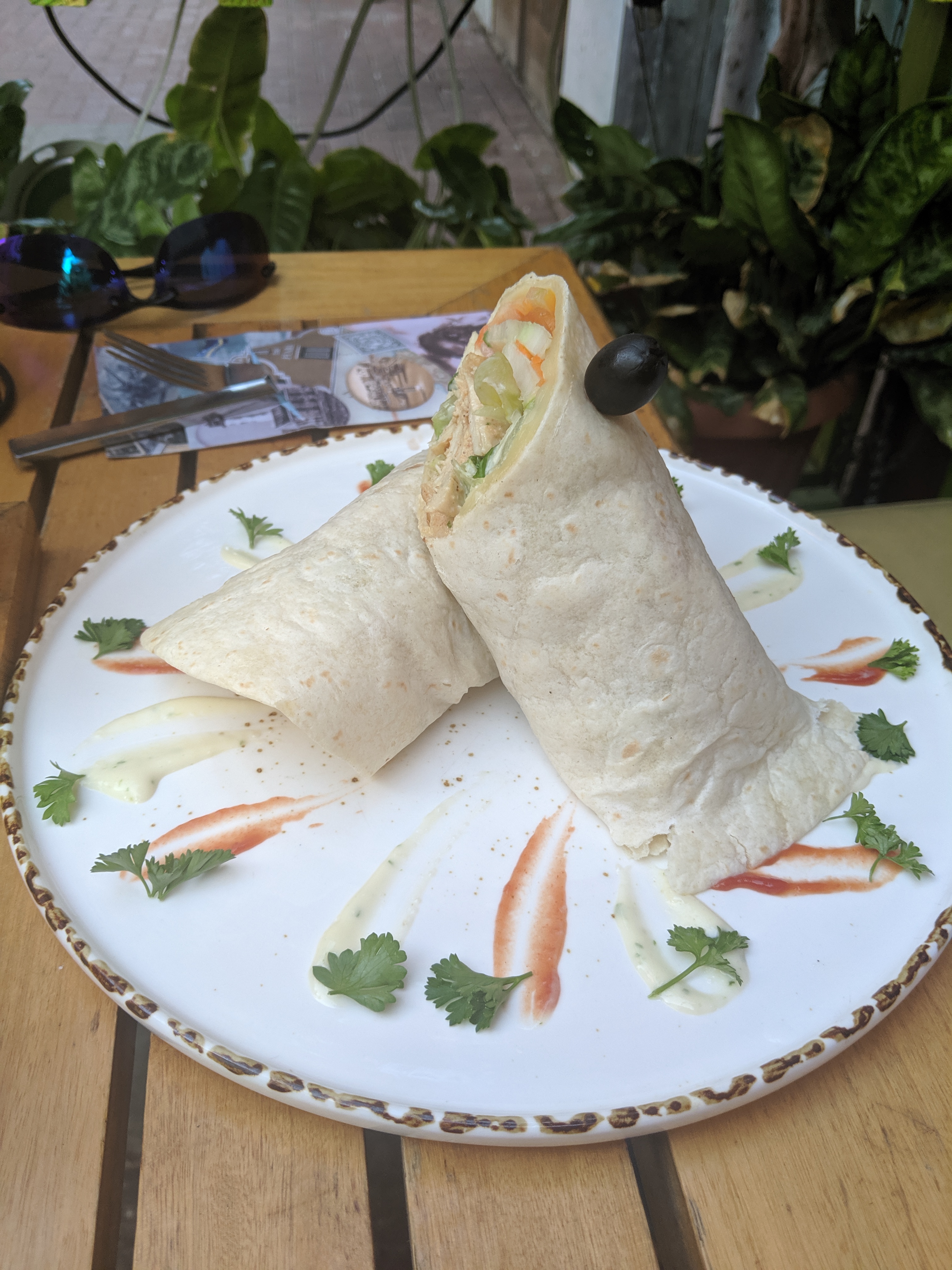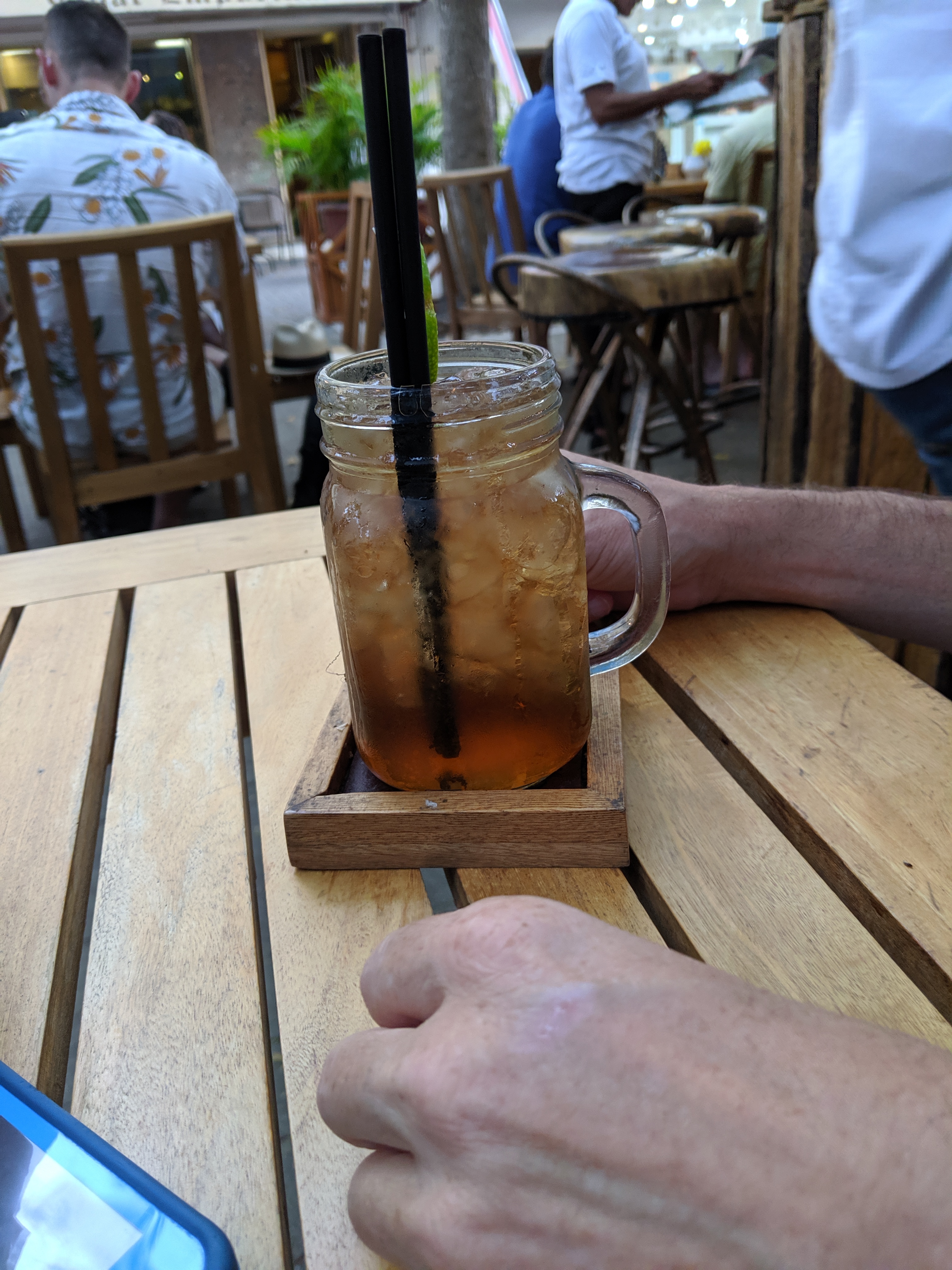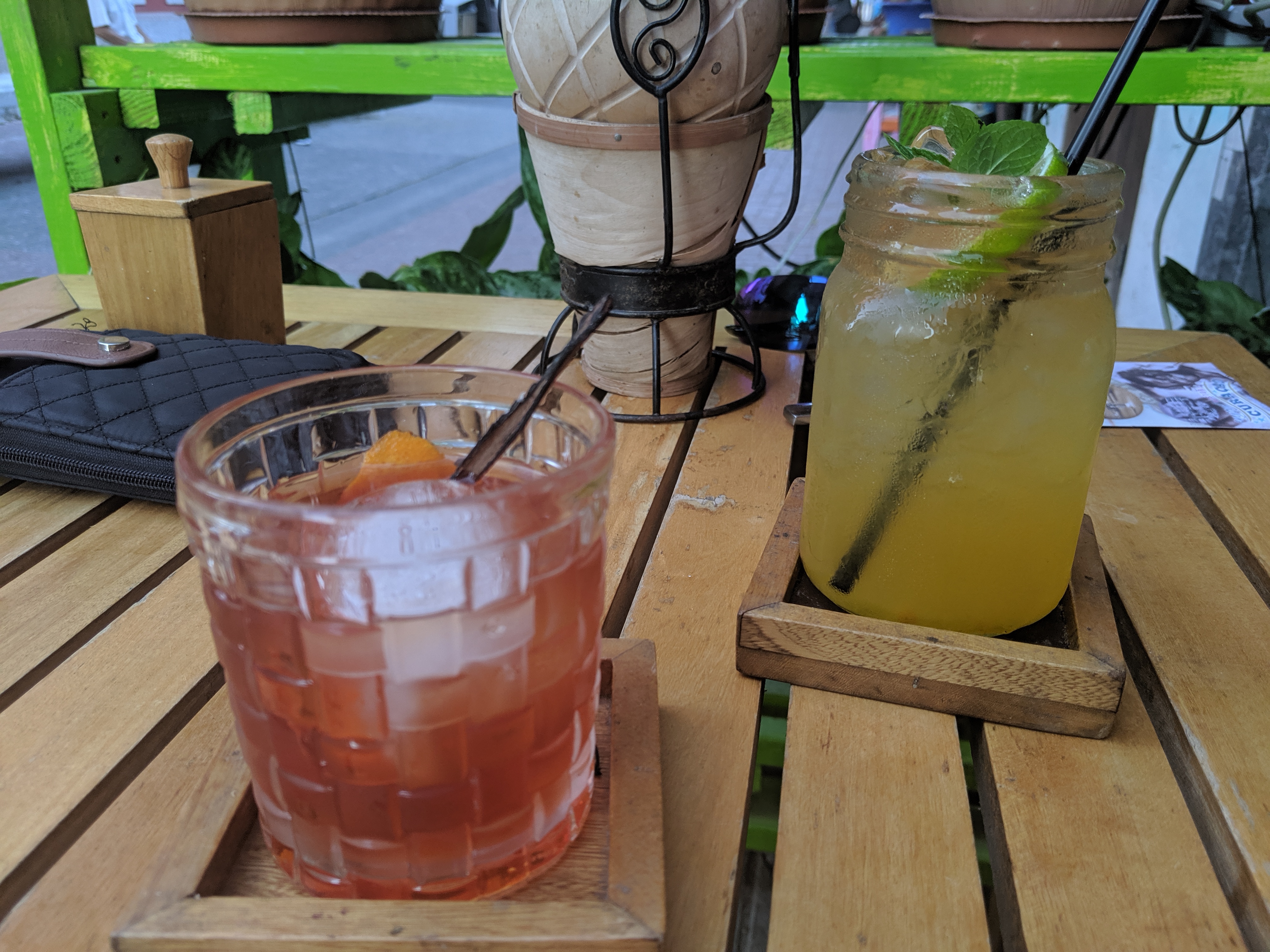 This night we went to La Boheme to try it out. We were given the largest menu I’ve ever seen, seriously! I took a picture with it, and Cody humored me! This restaurant was a little tricky for me since I can’t eat gluten, but I got a salad plate and Cody opted for a wrap. We were told to order the drinks with the “oldest rum” so that it would be the strongest drink. I’m not sure why the waiter felt we needed to get drunk, but we ordered the two drinks that he suggested. I took two sips and decided to revert to wine. Cody enjoyed both drinks.