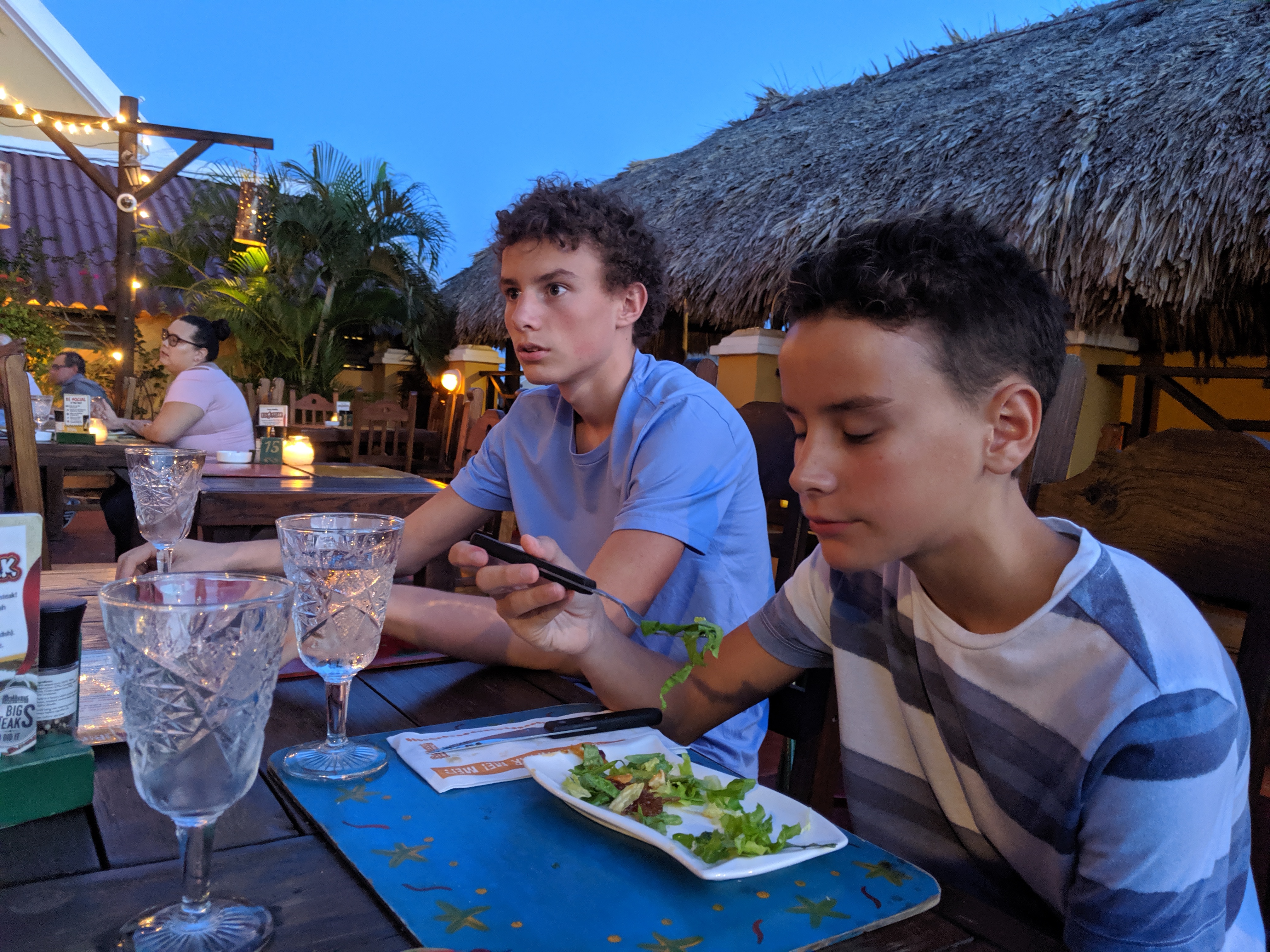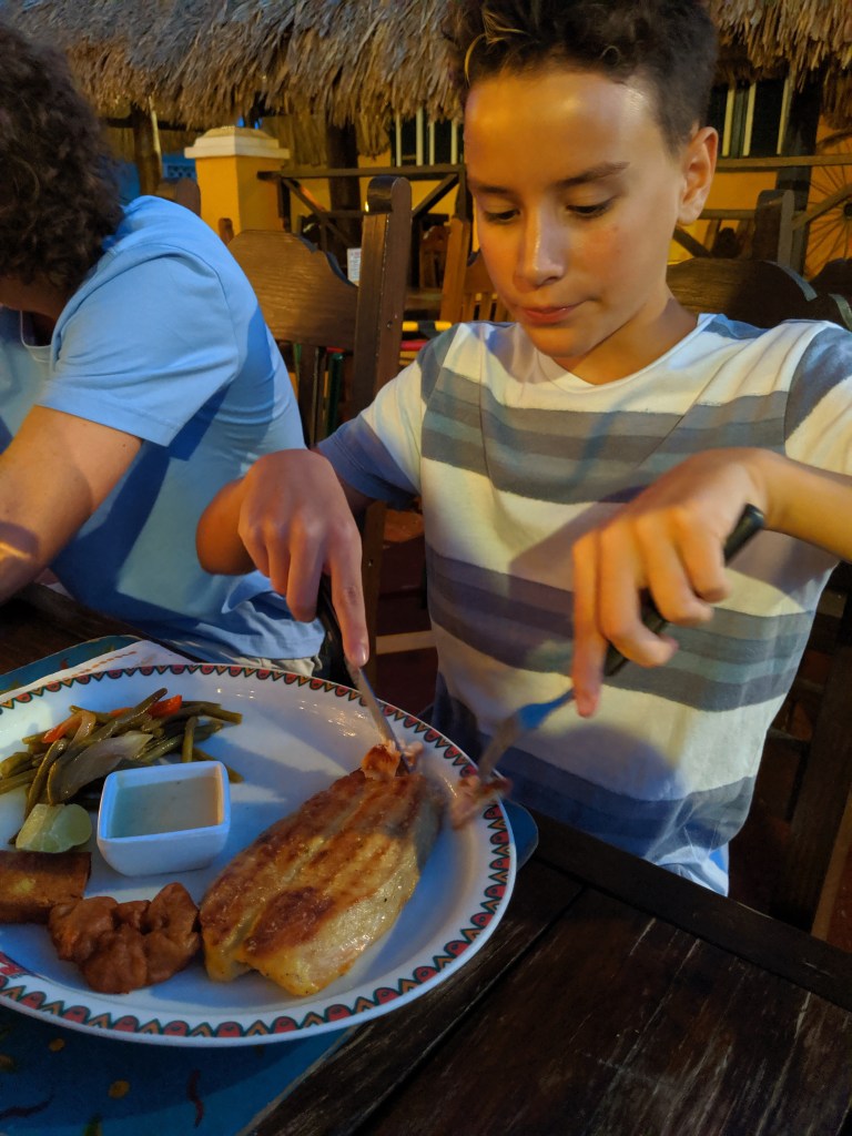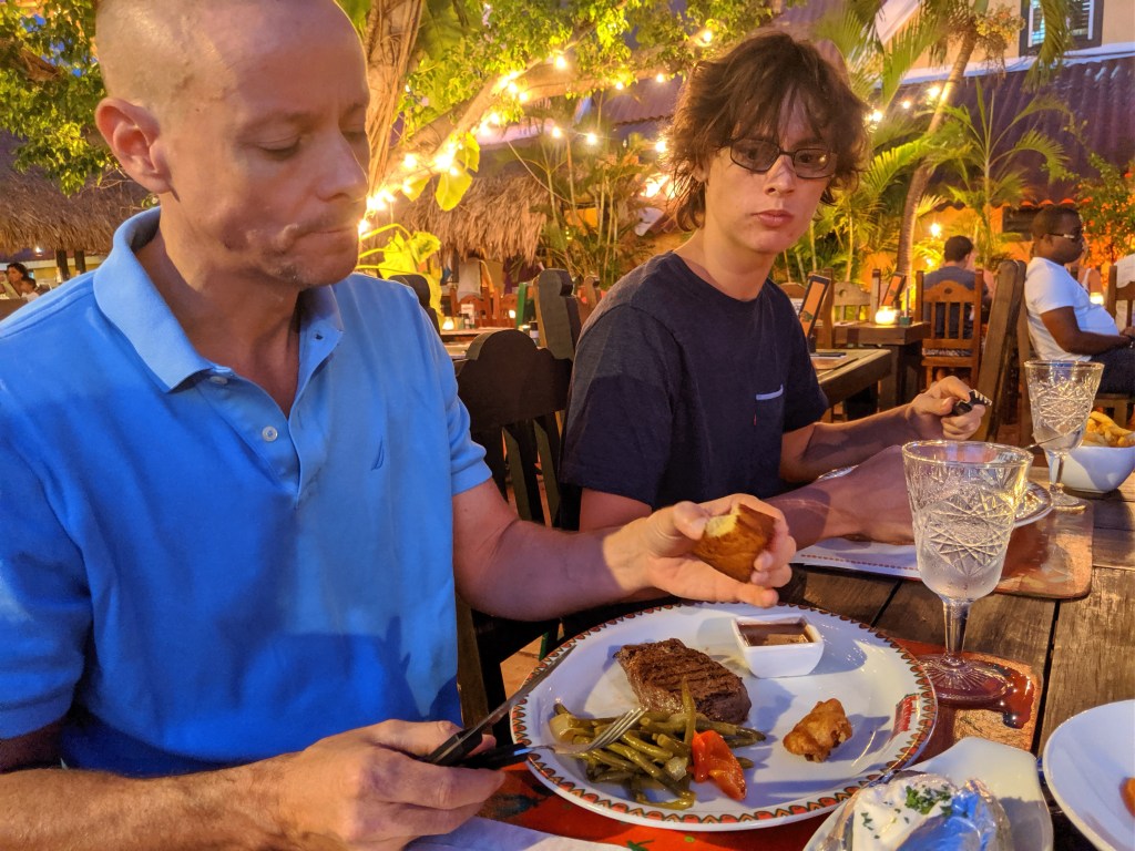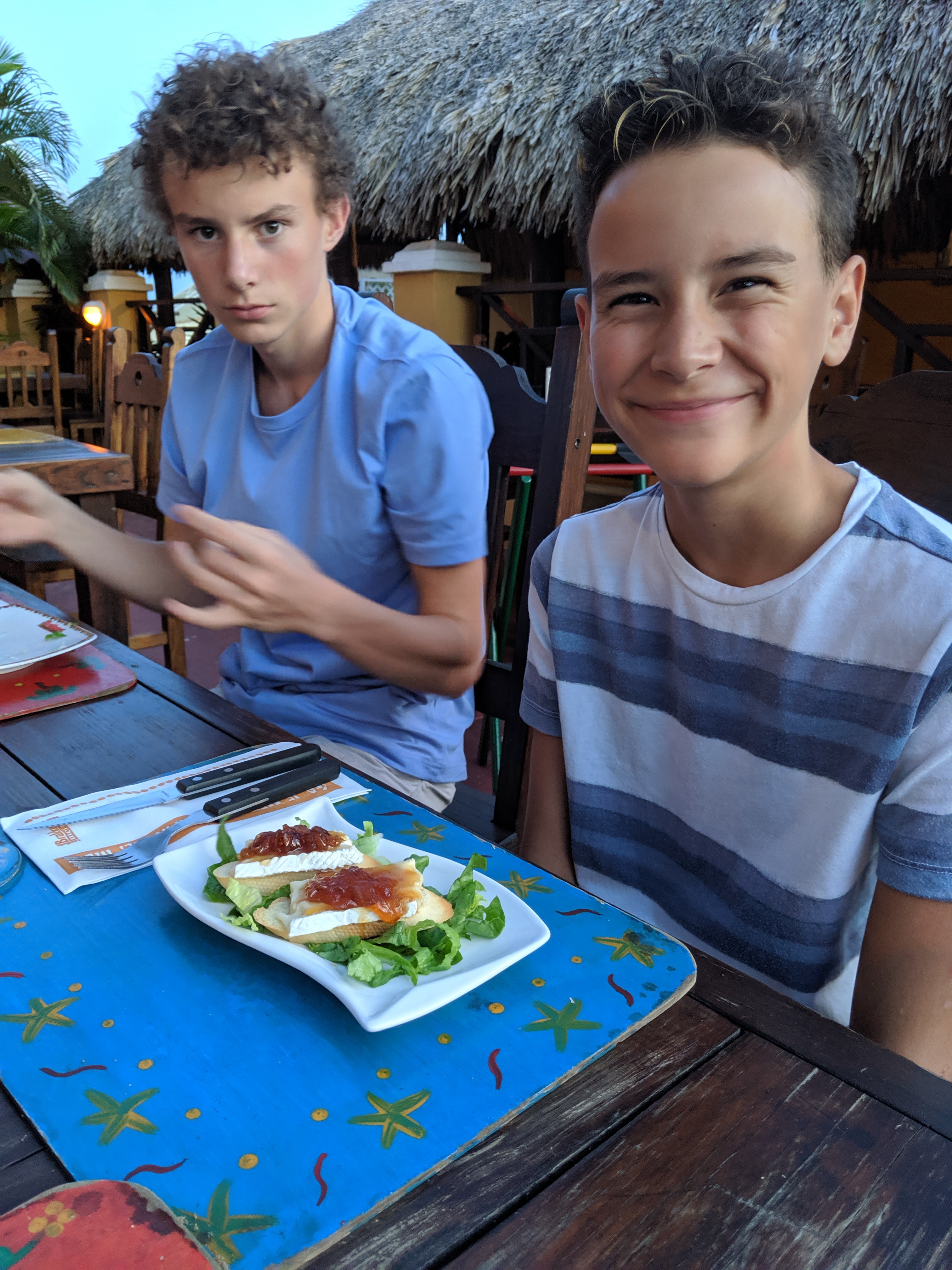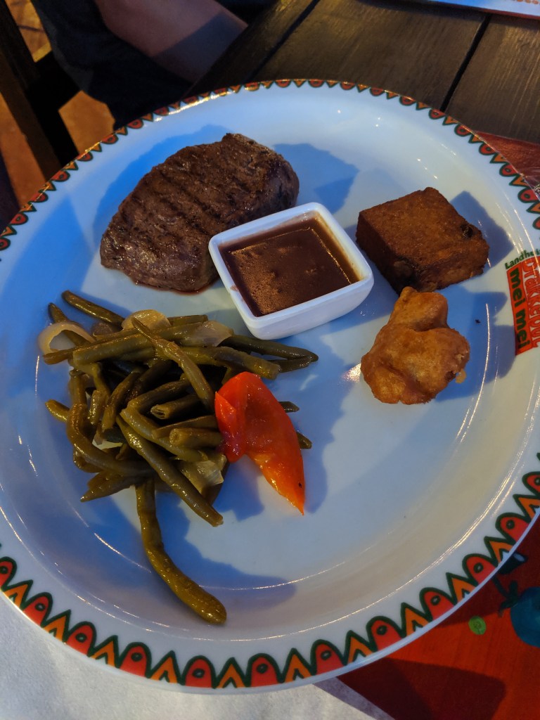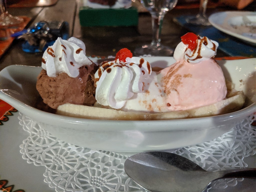 Everyone, but Rhys, had the salad bar. While this is not similar to a salad bar in the United States, it was quite delicious. It had some simple salad items, but it also had slaws, meat salads, and crab salad. Rhys really enjoyed his toast a brie. He sort of picked off the onions, saying they were too sweet, but I ate them and they were PERFECT! All of us but Rhys ordered the steak (see a trend happening?). PERFECTION! The salmon did not look terribly pleasing, but I tried a bite and it was quite deceiving: perfectly seasoned and cooked well. We divided on the desserts as well, the kids went for Oreo, and the parents went banana split. Both were divine. Rhys was busy trying to scrape every last bit of ice cream from his plate when the waiter walked by and suggested he pick it up and lick the remains. 😆 I did stop him from complying.