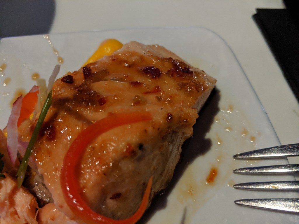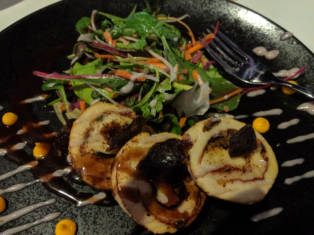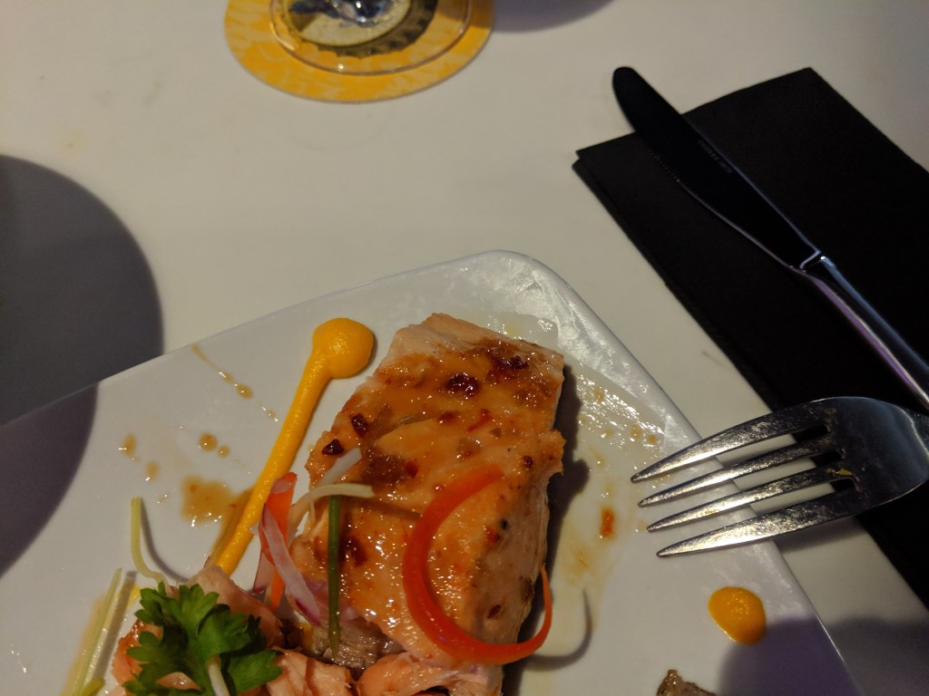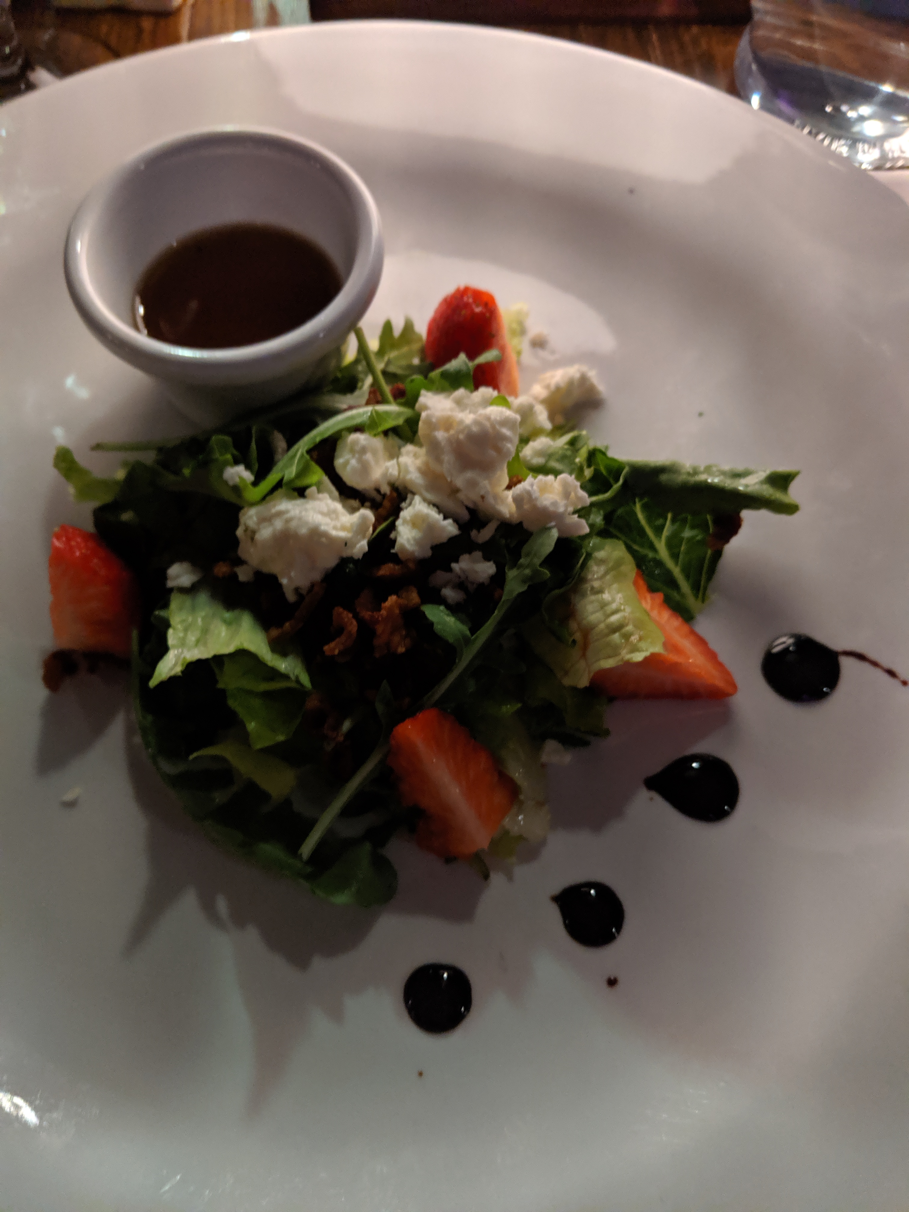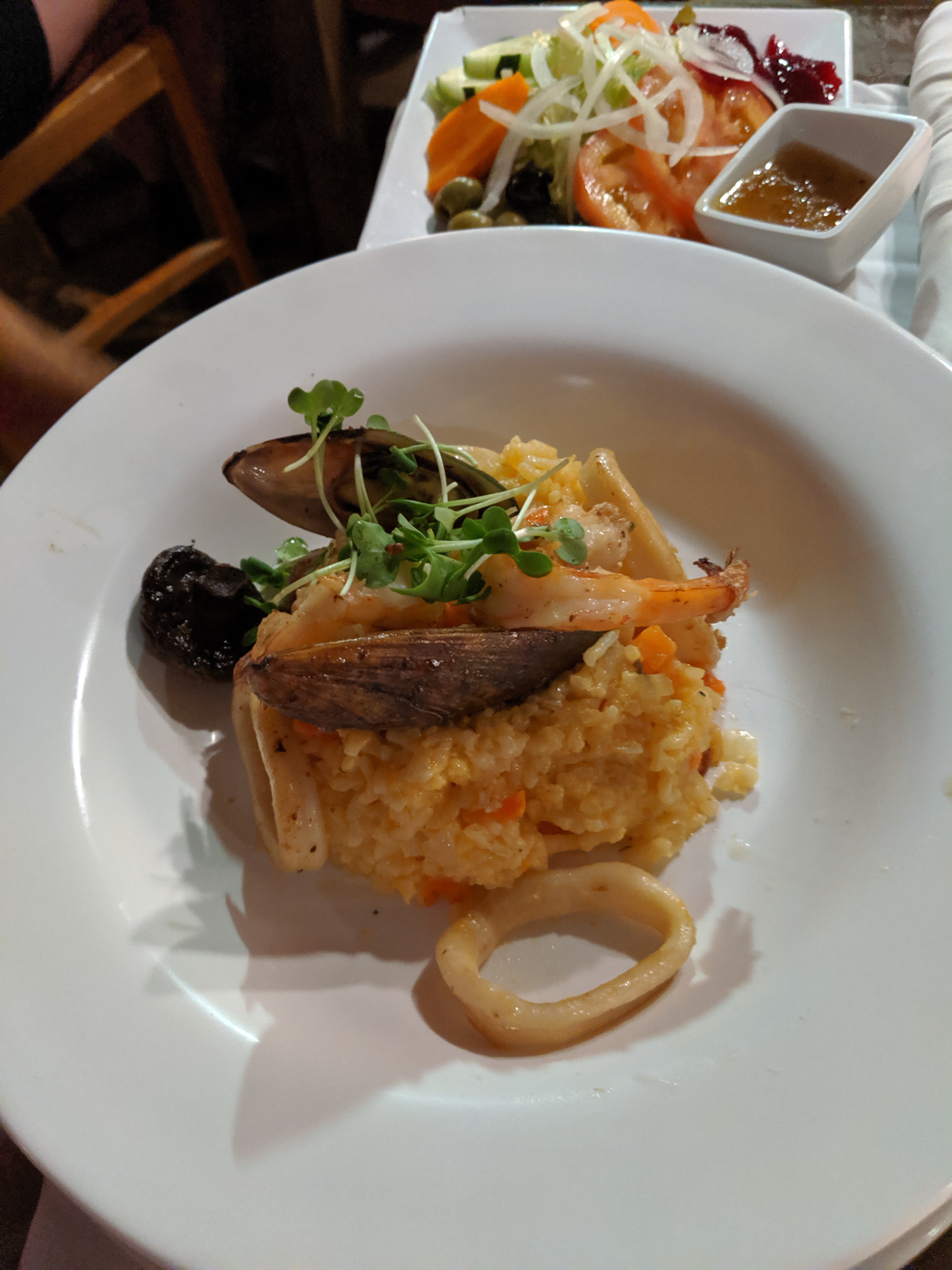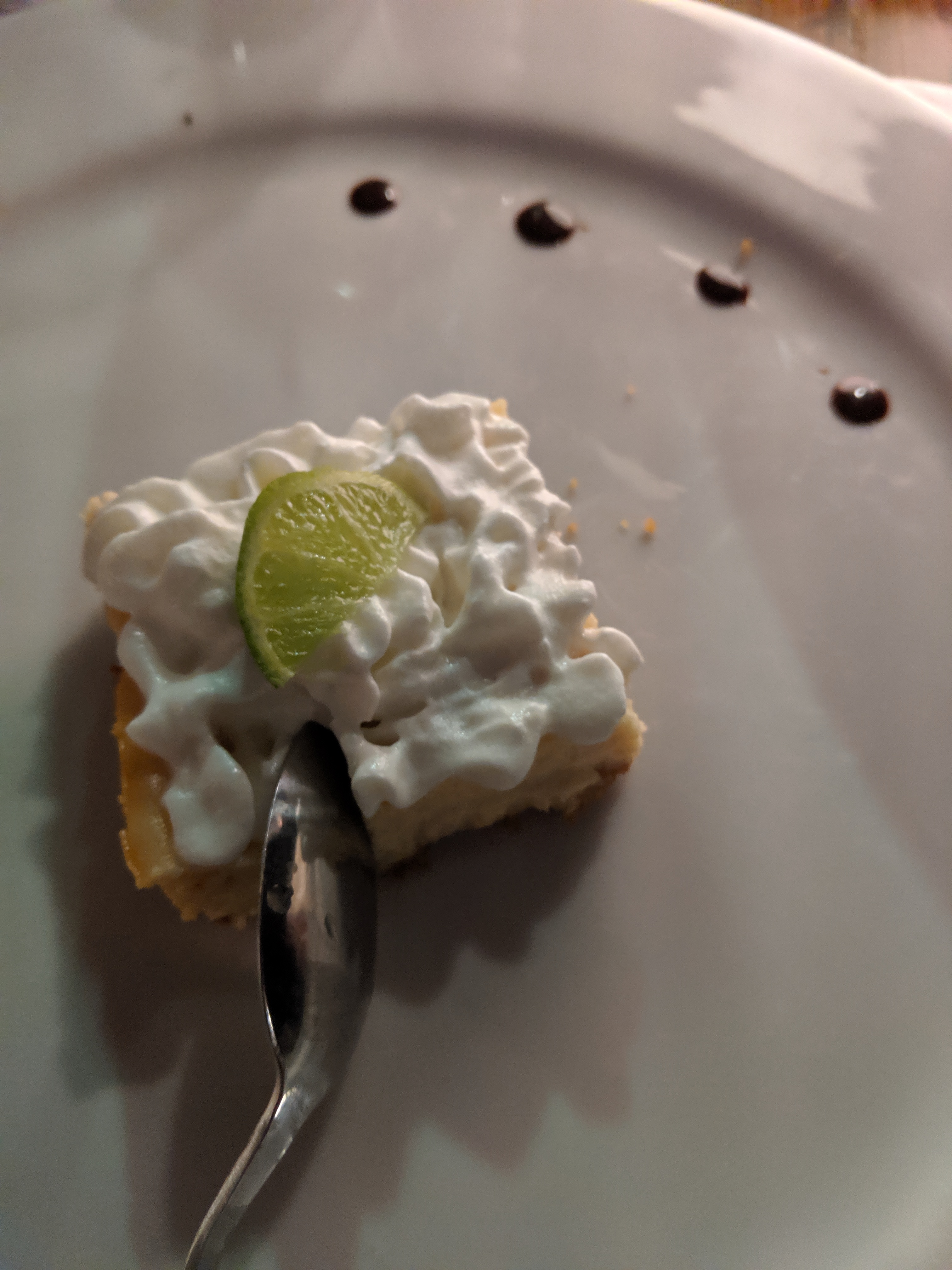 Cody chose the seared octopus, Sicilian seafood rice, and fudge cake. I had the salad, sirloin, and key lime (actually, Cody ate both desserts). The food was good, but the atmosphere was definitely the highlight. I took a bite of the key lime pie, and it was delicious. I really wish I could gluten it up, but I had to let Cody finish it. He really enjoyed his seafood rice. So, as others have said, Perla Del Mar probably does excel at seafood. We really enjoyed our evening, even though our waitress forgot we were there at one point!