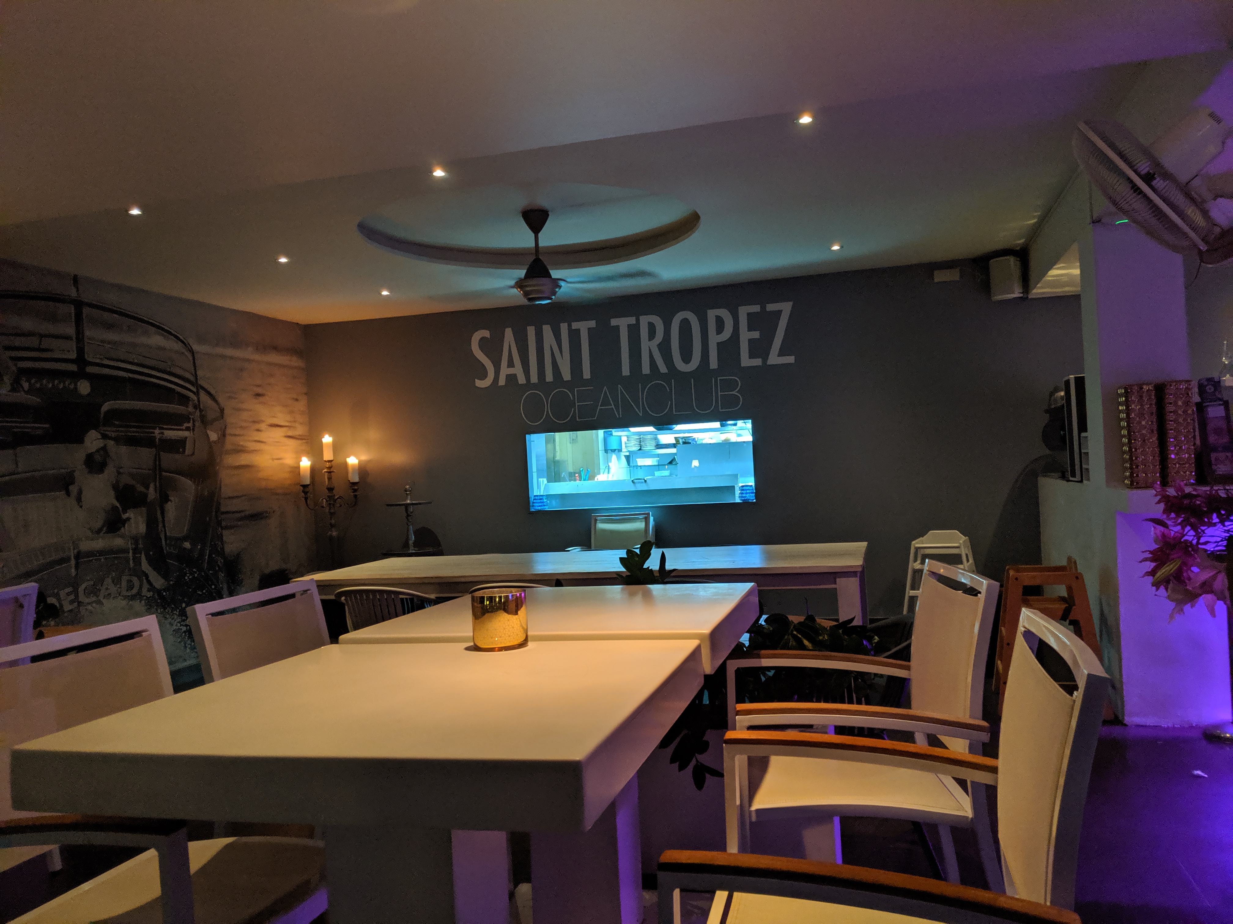 When we arrived at Saint Tropez, they informed us that the “Restaurant Week” menu was only available for dinner. Trying desperately to have a good attitude (I REALLY love salmon and chocolate!), I explained how lunchtime reservations were the only ones available. To my amazement, they just shrugged and rescheduled us for the evening! They didn’t seem to mind!