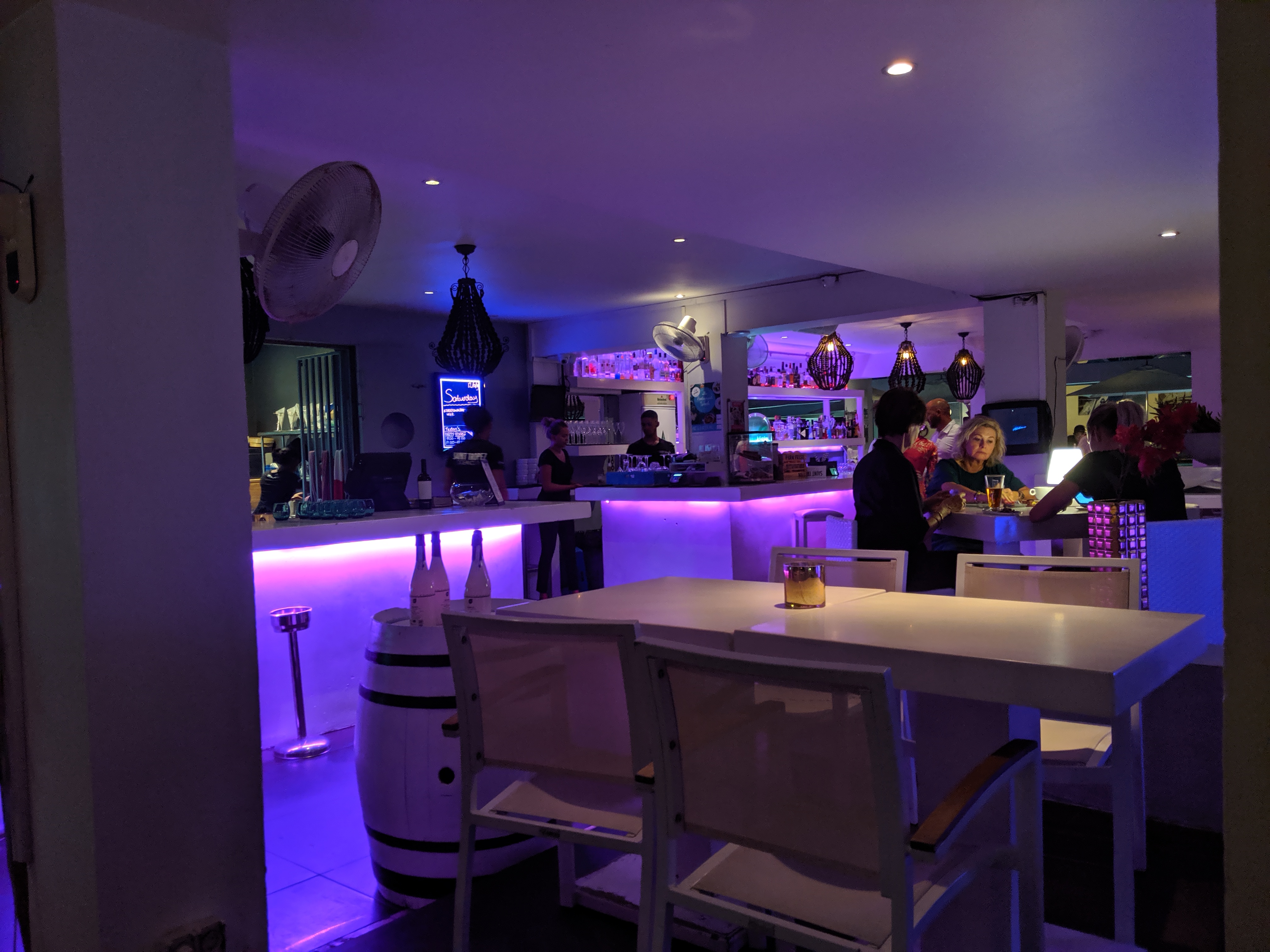 We came back that same night … at 8:00! Those who know me, this is WAY LATE! At night, you don’t have the same views, but the restaurant lights up a bluish-purple. It had a nice atmosphere, but I missed seeing the water.