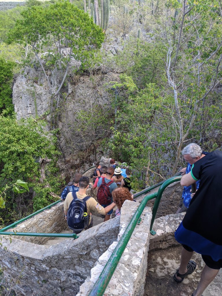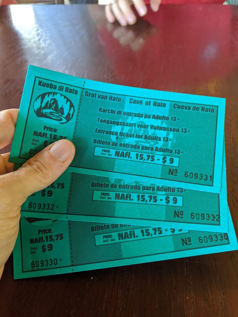 The Hato Caves are near the airport and on the same road. You can see the sign on the right coming from the airport. There is free parking at the caves. Once there, you can buy your tickets ($9) and have a snack at the restaurant. I personally enjoyed the trail of cacti leading up to the restaurant. I never realized how pretty different types are!