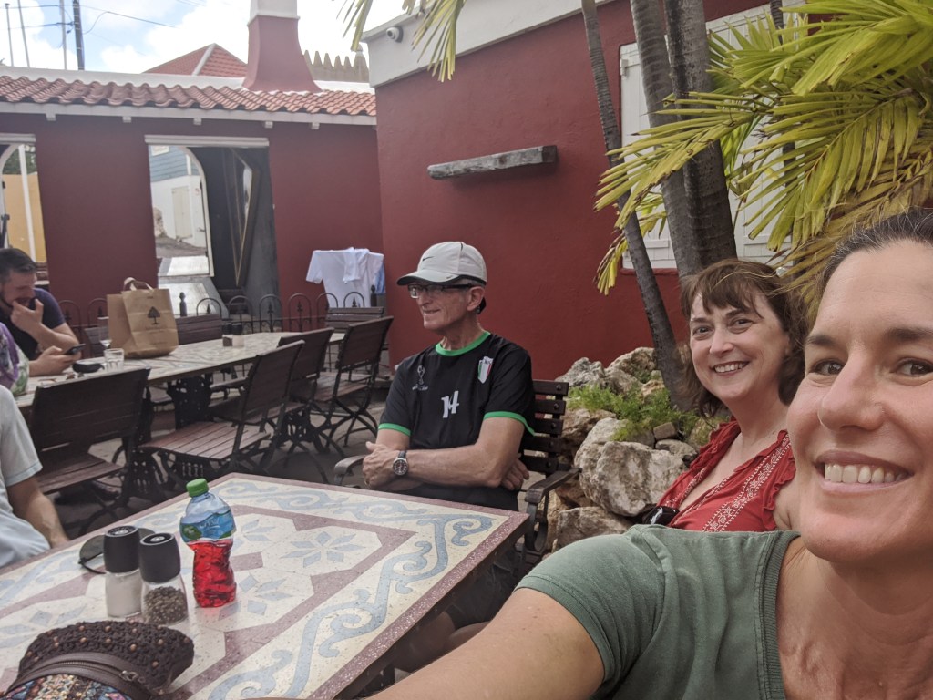 After the tour, we decided to leave that side of town and head to Otrabanda for lunch. We settled on Café Gouverneur De Rouville, and picked a lovely table in an outside atrium area. And then, bless this little island, it began to rain. So we ran indoors quickly and grabbed a table. The food selection was international and delicious (check out their menu online). I tried the seafood salad and, while I am not sure what the white fish was specifically, they made sure my food was gluten-free for me. Cody and I tried the local beer that they brew specifically for this restaurant (as far as I can tell). I’m not a beer connoisseur, but I thought it was a great beer! I believe I would go back for that alone!