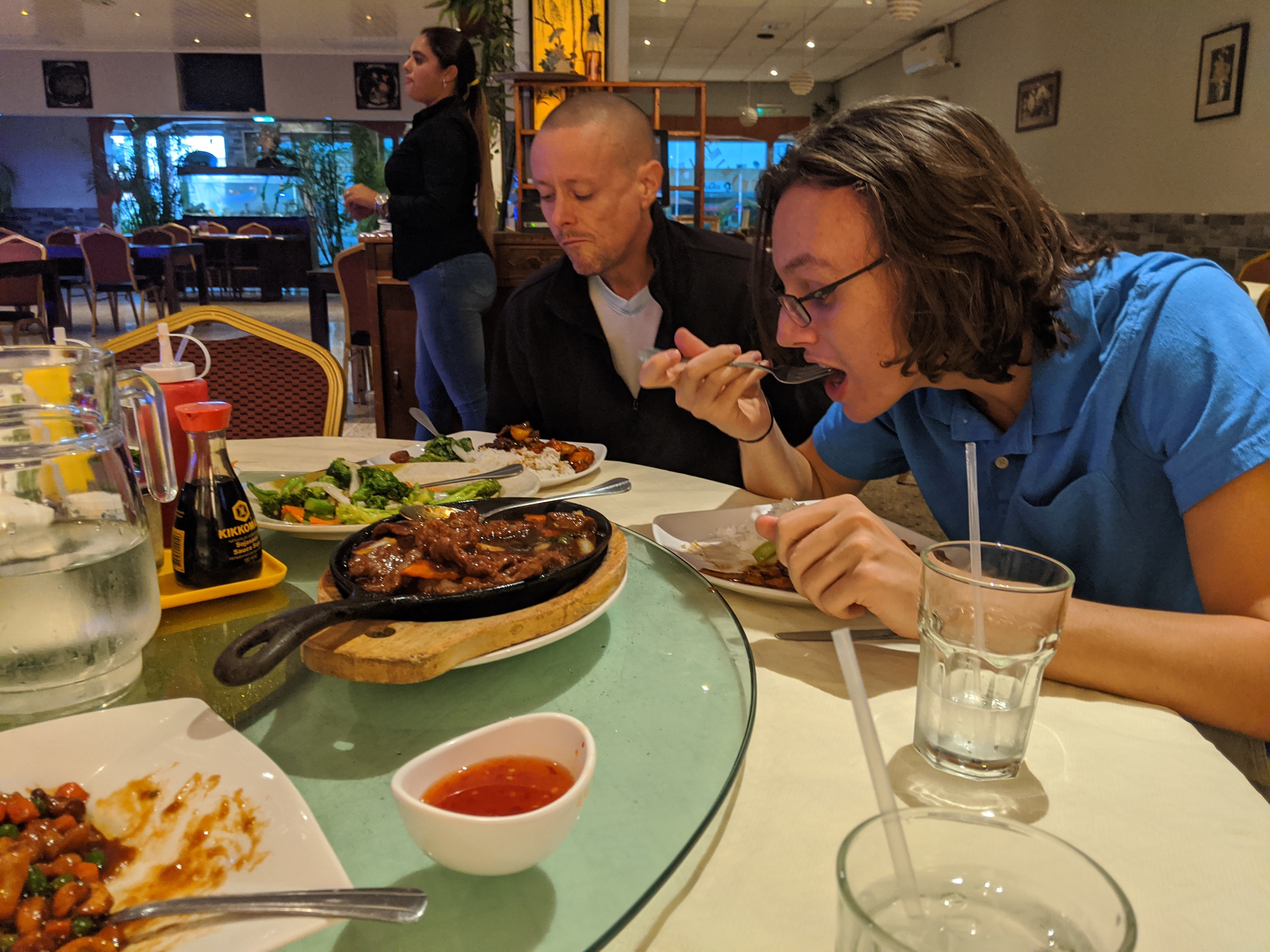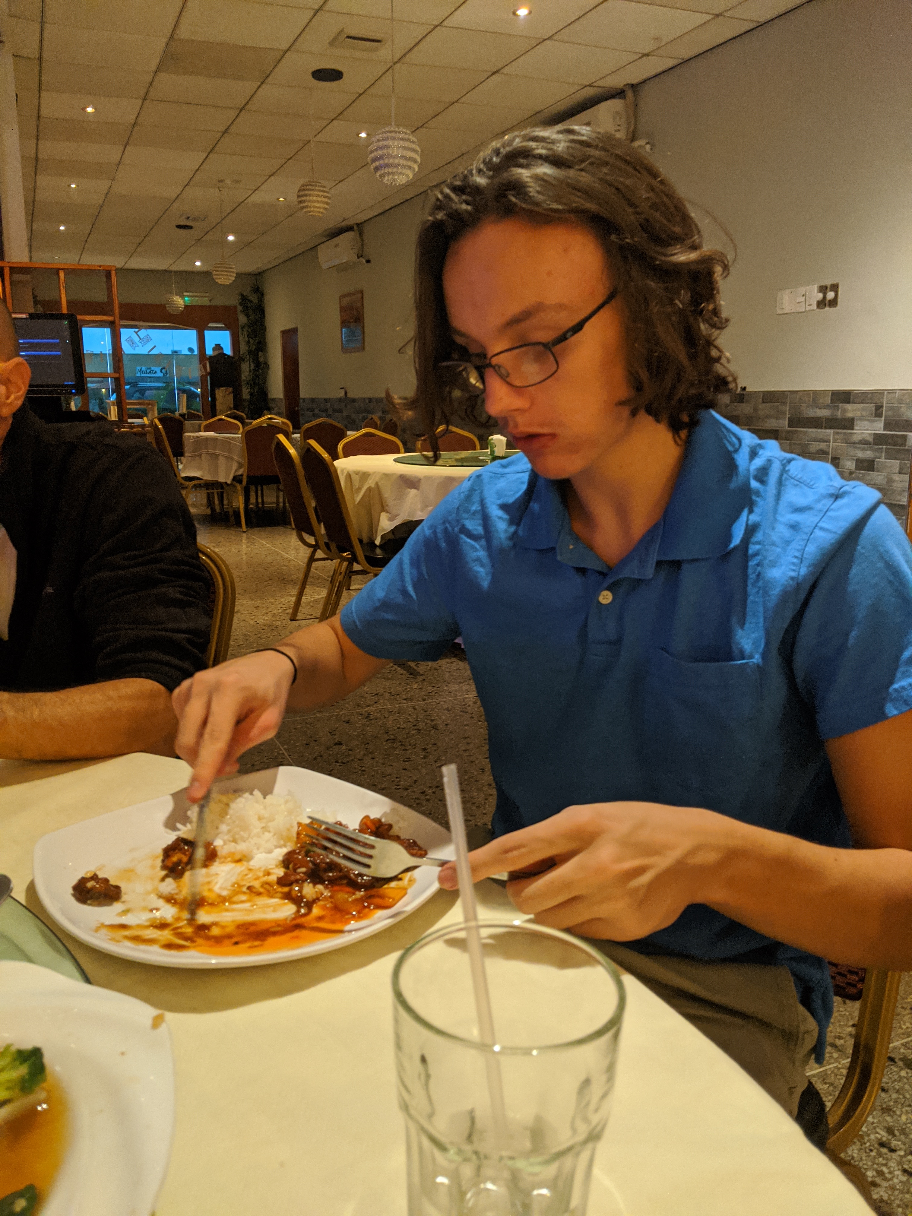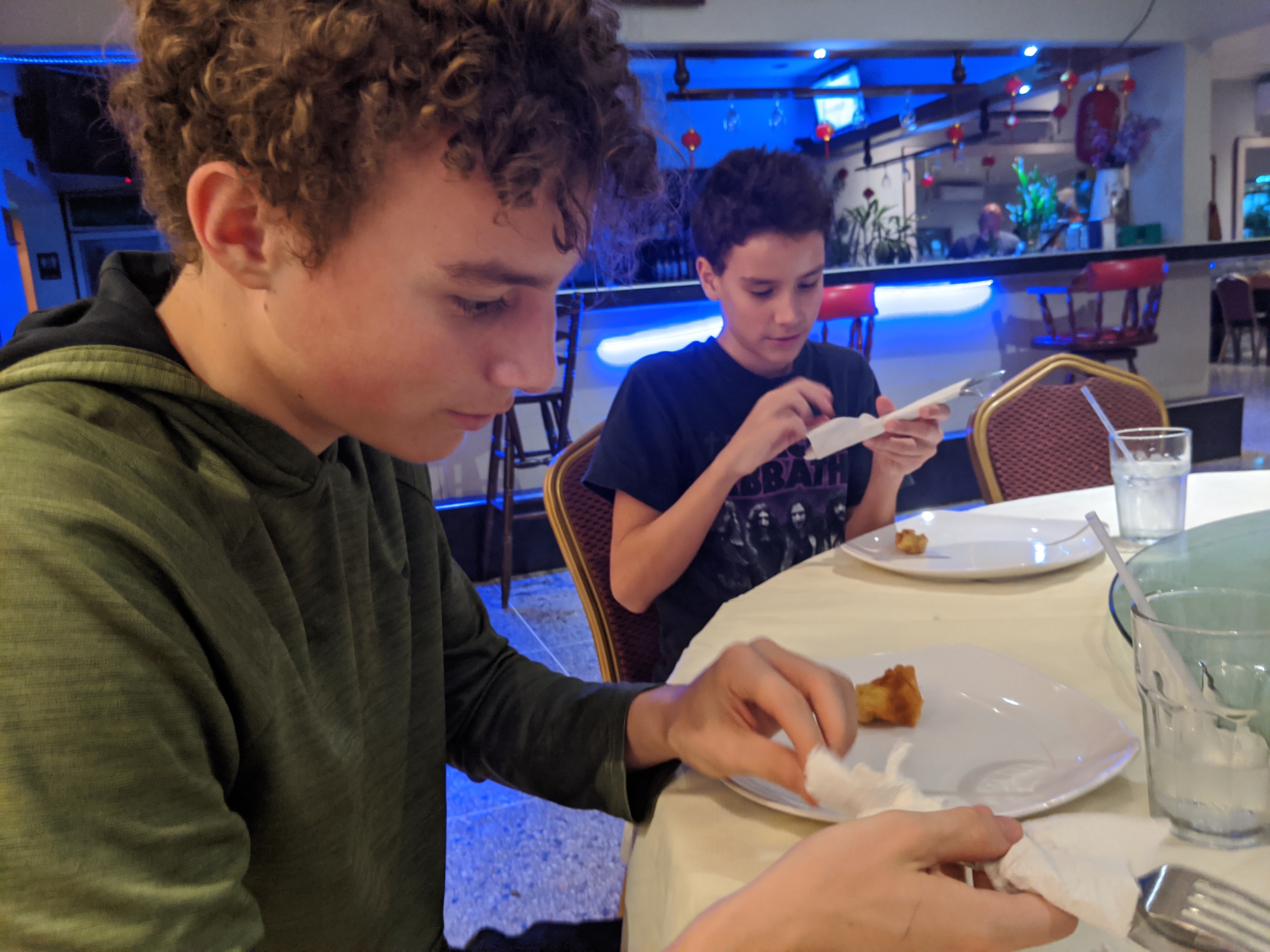 Since moving to the island, we haven’t found spectacular Chinese food. However, I asked around and was told to try Eastern Dynasty. It is on Franklin D. Rooseveltweg, tucked in the middle of a busy street. We went early, mostly because of COVID shutdowns and limitations, so I didn’t want to be without a table. We were the only ones there. I know it filled up quickly after we left, but people just eat so much later than we’re used to. The menu is extensive – about 6 pages long. The boys were able to find the food they wanted, but there was a lot that shocked them. The food is definitely more traditional, not “American Chinese”.