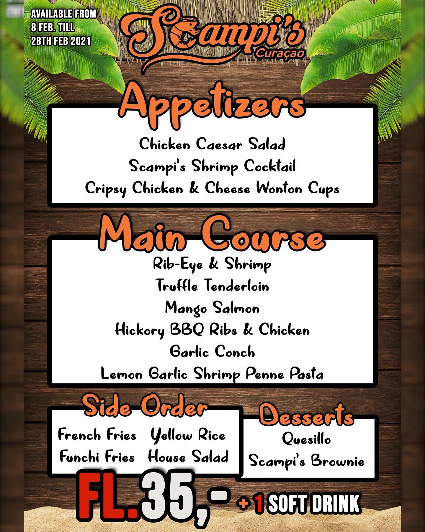 We actually went to Scampi’s because they have a temporary 3 course menu for a set price (see below). We are a family of five with three teen boys – they are NEVER full – and we are definitely frugal, so this appealed to us. There is a standard menu that is longer and constant. It has a good selection of food, mostly seafood and beef.